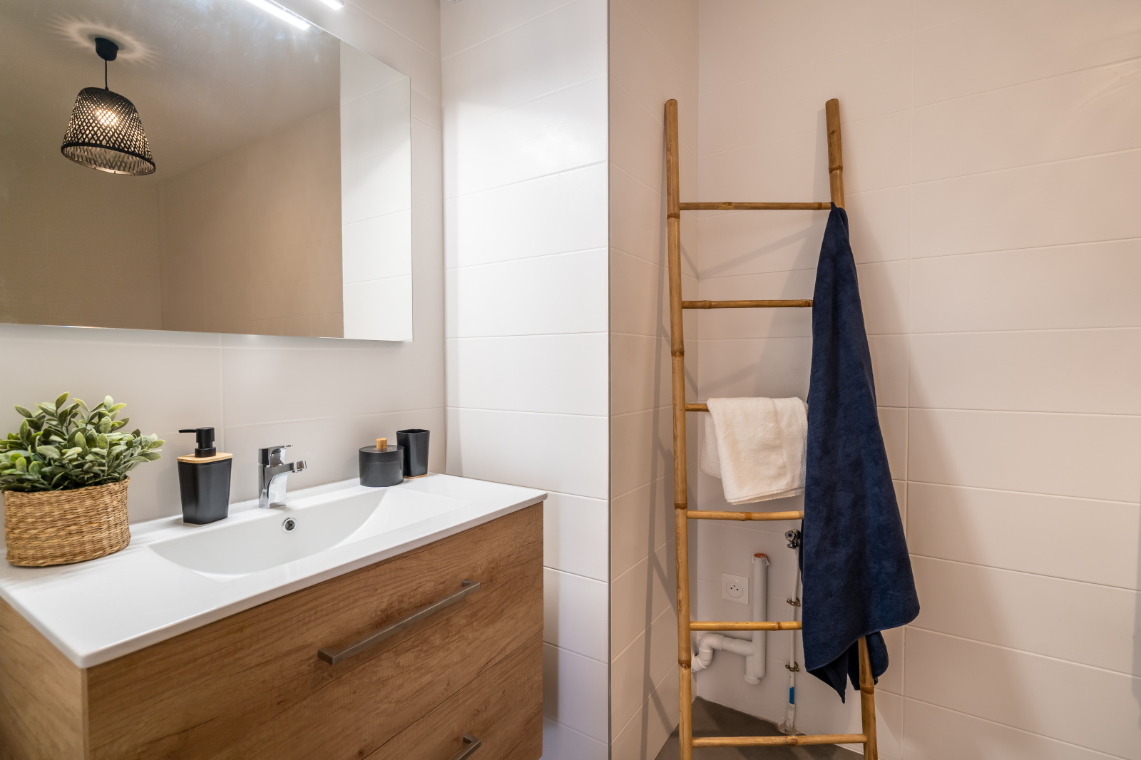 Au 1er étage d'un immeuble livré en 2022, il bénéficie d'une situation idéale en centre-ville, au calme.