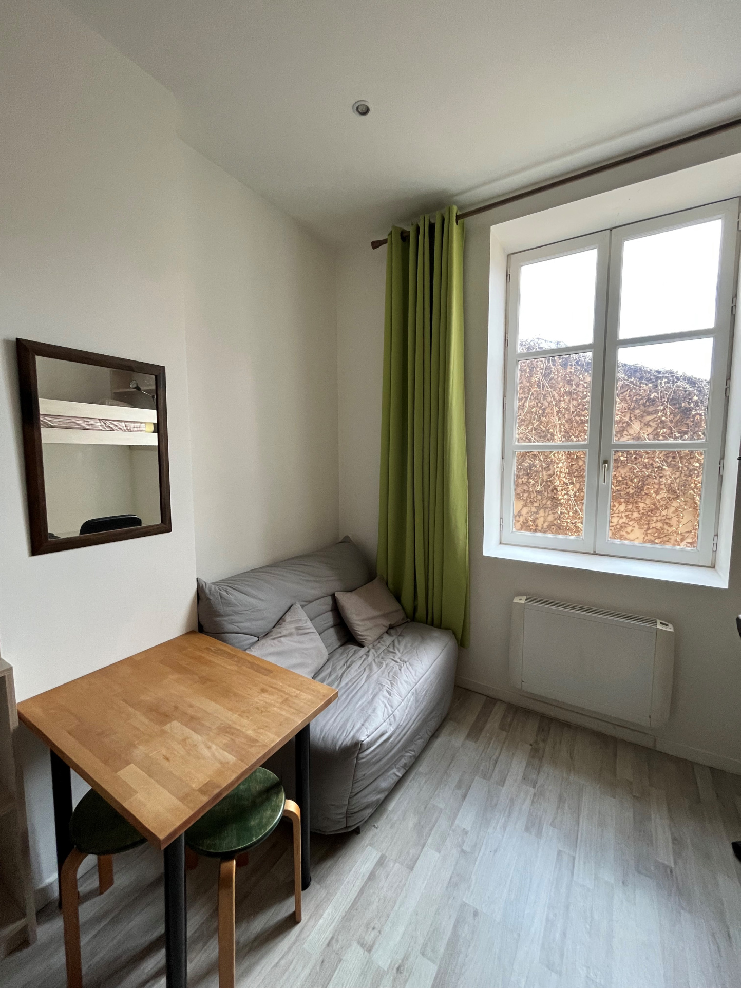 Entièrement rénové, dans un immeuble ancien de quartier, il se compose d'une pièce meublée bien agencée avec une jolie cuisine équipée kitchenette, de nombreux rangements, ainsi que plusieurs couchettes (Grand Lit/bureau + canapé convertible)